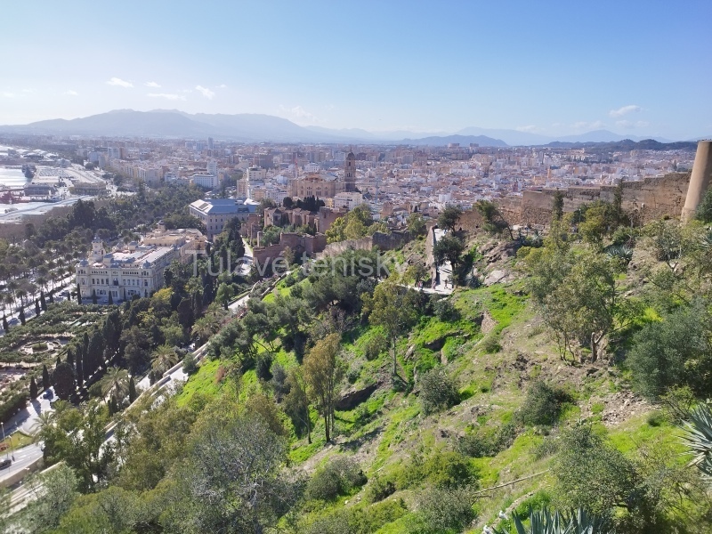 Hradby sú verejne dostupné a ja som si akoby hradný strážca pochodil celú pevnosť po obvode. Pri krásnom slnečnom počasí si užívam krásne výhľady na celé mesto, ale aj okolité kopci a hory v ďalekom pozadí. Najviac zaujme La Malagueta, corrida býčích zápasov. Málaga má jeden z najväčších štadiónov týchto zápasov. A preto niet divu, že z pevnosti zaujme práve táto monumentálna stavba.