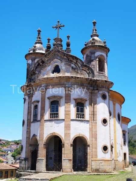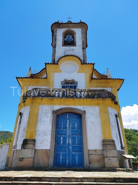 Zvonku je kostol zdobenými jednoduchými barokovými dekoračnými prvkami. Fasáda je nenápadná a jednoduchá. Biela farba s kombináciou žltej po stranách je symbolom jemnosti. Vchádzam dnu a zisťujem, že i keď je kostol mierne bohatšie dekorovaný, tak stále nie je bohato zdobený ako iné kostoly v Ouro Preto. Z dreva vyrezávaný oltár je pokrytý jemným zlatom a je ústredným bodom celého kostola.