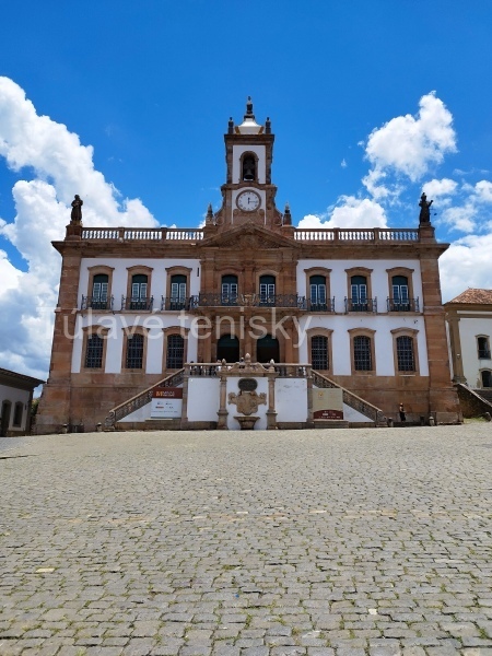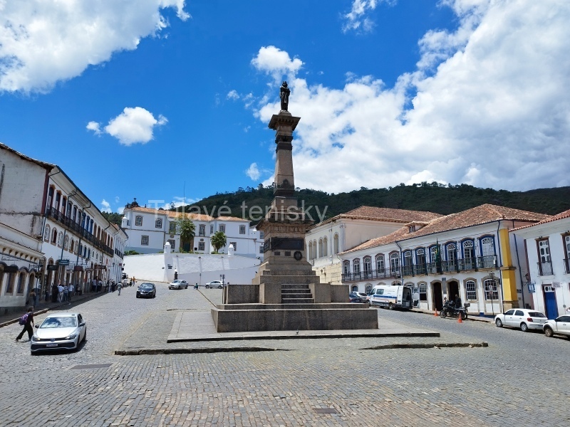 Uprostred námestia stojí na vysokom podstavci socha významnej brazílskej osobnosti – Tiradentesa, ktorý sa významnou mierou podieľal na brazílskej nezávislosti. Na jednej strane je vybudovaný prepychový guvernérsky palác, na druhej strane námestia sa týči veža barokového paláca, kde sídli Museu da Inconfidência. Námestie je na miernom návrší, takže môžem obdivovať okolité ulice v údoliach. Nad každým sa týči kostol. Tým, že je mesto vybudované v ťažkom teréne, tak ulice idú stále do kopca a z kopca a potom zase naopak. Niektoré z nich ale poriadne strmé.
