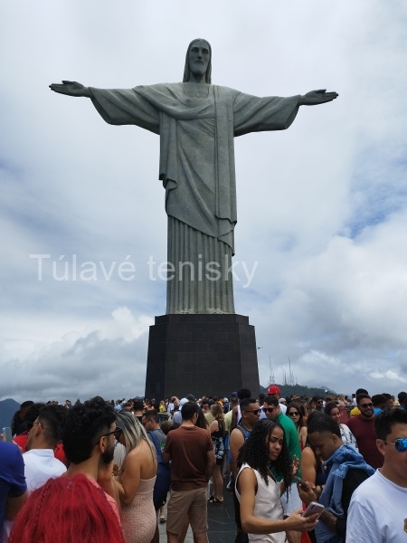 Vystupujeme pod vrcholom hory Corcovado. Ešte nás čaká pár schodov, aby sme sa dostali k soche Krista. Toto turistické miesto je preplnené turistami a vzniká tu neorganizovaná tlačenica. Som svedkom divných situácií, kde pre najlepšie fotky sa snažia turisti tlačiť v rôznych pózach. S rukami hore, s rukami do strán či najlepší turisti sú takí, ktorí si položili na zem telefón a snažia sa urobiť selfie, kde sa snažia objímať s Kristom.