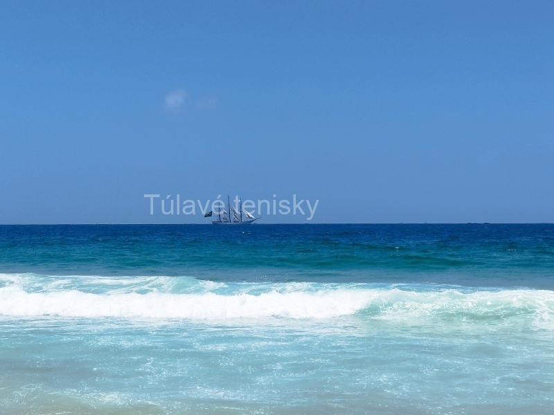 Idem do vody. Na prvý pocit je voda studená, na druhý pocit až tak moc nie. Plávať sa tu ale nedá. Obrovské vlny a silné prúdy to neumožňujú. Vlny sú tu také silné, že človek má problém to ustáť na nohách. Prišla silná vlna, sotva to ustojím a spätná vlna je taká silná, že ma ťahá späť do oceánu. Je to akoby ma niekto silno ťahal za nohu.