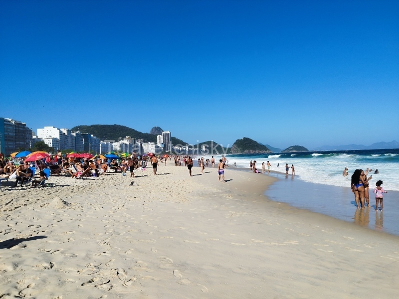 Ako tak sedím na pláži, zamýšľam sa nad tým, aké by to bolo super mať tu domov. Ráno sa zobudiť, ísť si zabehať na pláž pri slnečnom počasí a príjemných teplotách. Promenáda Copacabana je magické miesto, kde sa stretávajú športovci, svalovci, seniori, ale aj ľudia s pneumatikami okolo pásu snažiaci sa zhodiť pár kíl. I keď je voda v oceáne na prvý dotyk relatívne studená a vlny sú obrovské, aj tak sa pláž do obeda pomaly plní.