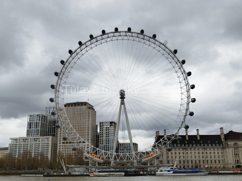 Na druhej strane rieky je príjemne nábrežie odkiaľ môžem pozorovať celú stavbu. Z tejto strany nábrežia je budova ešte krajšia. Stačí prejsť cez cestu a stojím pred ďalšou dominantou Londýna. London Eye, londýnske oko je kolotoč s výhľadom na budovu parlamentu a celé blízke okolie. Kedysi to bol azda jediný možný spôsob vidieť Londýn z výšky. To bolo v dobách ešte predtým ako sa v meste začali stavať mrakodrapy.
