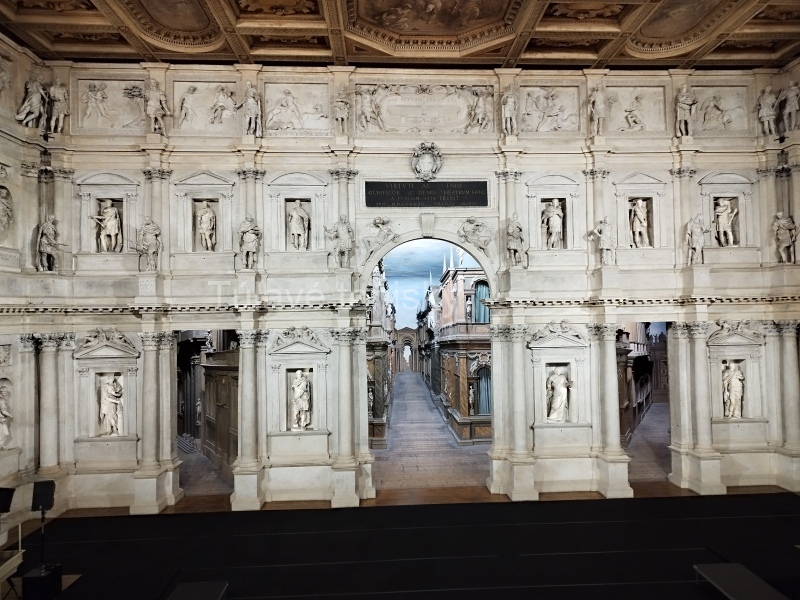 Divadlo je slávne svojím presným architektonickým riešením, ktoré dokonale napodobňuje ilúziu hlbokého divadelného priestoru. Pri návšteve sa môžete prejsť po jeho útrobách a predstaviť si, ako tu kedysi znievali slávne hry. Pri pohľade z javiska sa pred očami návštevníka zobrazí veľkolepé dielo. Je to najstaršia napodobenina antického divadla prekrytého strechou.