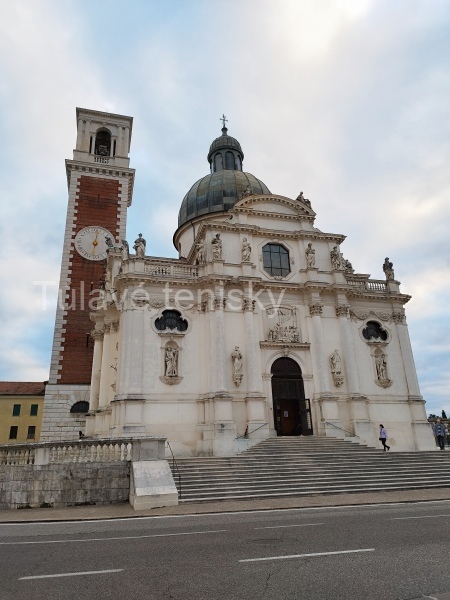 Opustil som brány historického centra mesta a vydávam sa na neďaleký kopec nad mestom, kde sa vypína Santuario della Madonna di Monte Berico. Cesta na kopec je lemovaná arkádami, kde prespávajú bezdomovci. Majú tam z kartónov označené svoje jednoduché príbytky. Cestou na kopec som sa mierne zapotil, ale rozhodne toho neľutujem.